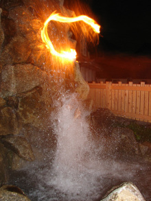 頭の上のかがり火から、なにやら龍のような炎が・・・。