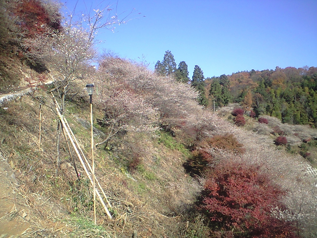 場所によっては四季桜と一緒に紅葉とイチョウが植えてあるんですね。