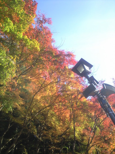 燃えるように真っ赤に染まった紅葉と、そこから漏れる木漏れ日がなんとも鮮やかでした☆